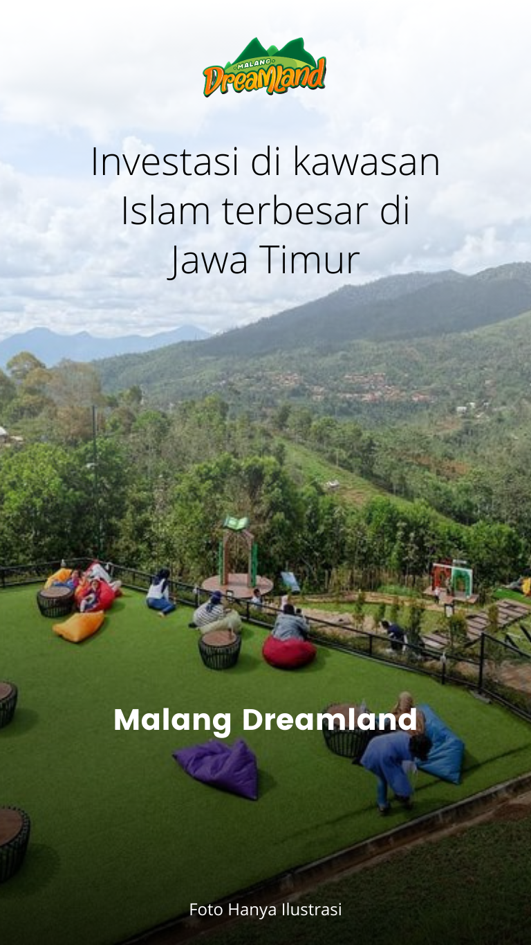 MALANG DREAMLAND merupakan wisata berkonsep islami terbesar di Jawa Timur dengan luas lebih dari 10ha dan juga dengan view pemandangan Pegunungan Semeru dipadukan dengan investasi produktif serta tanah Villa yang dapat dimiliki oleh anda, yang nantinya hasil dari penjualan akan digunakan untuk membangun Pusat Pendidikan Al-Quran.